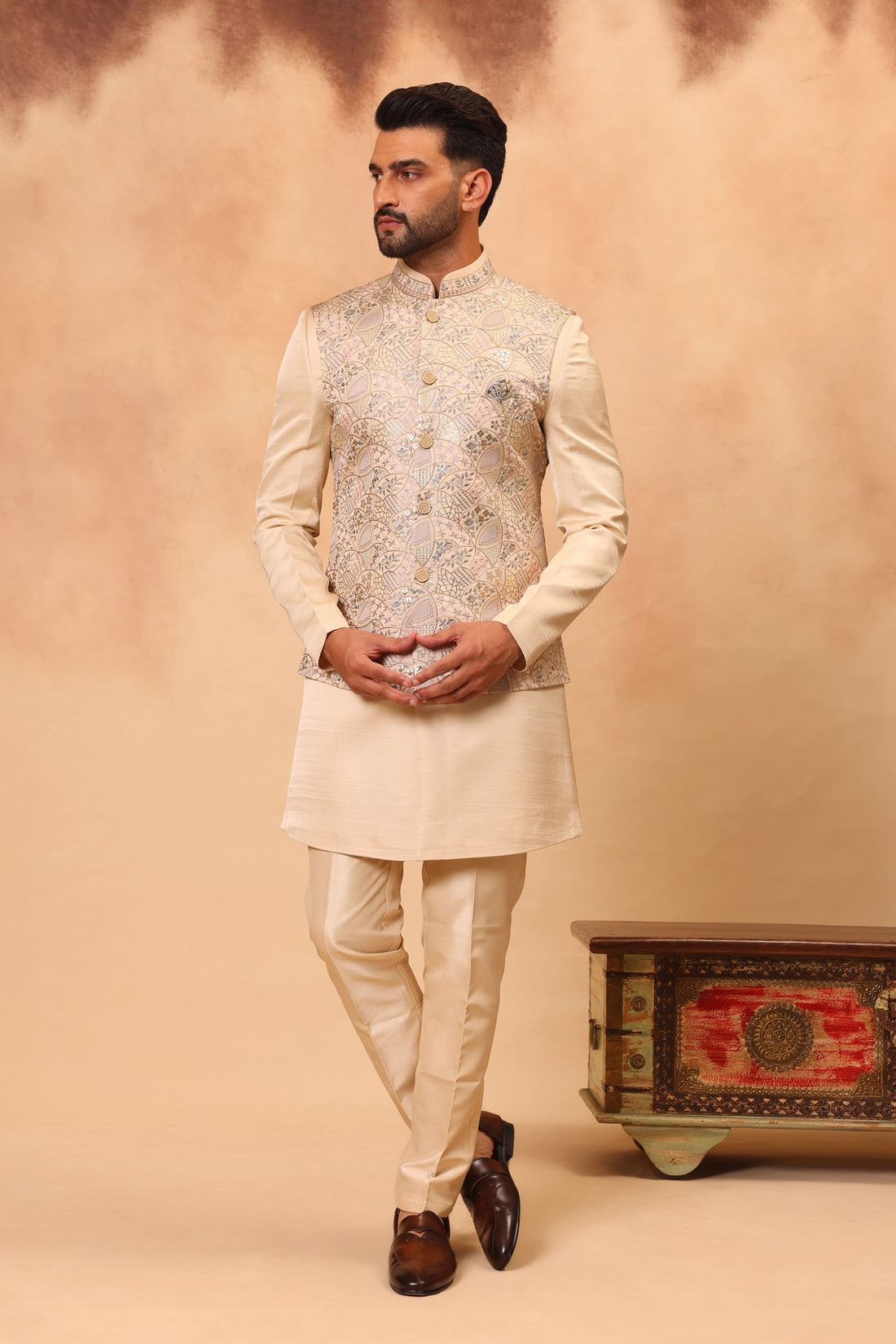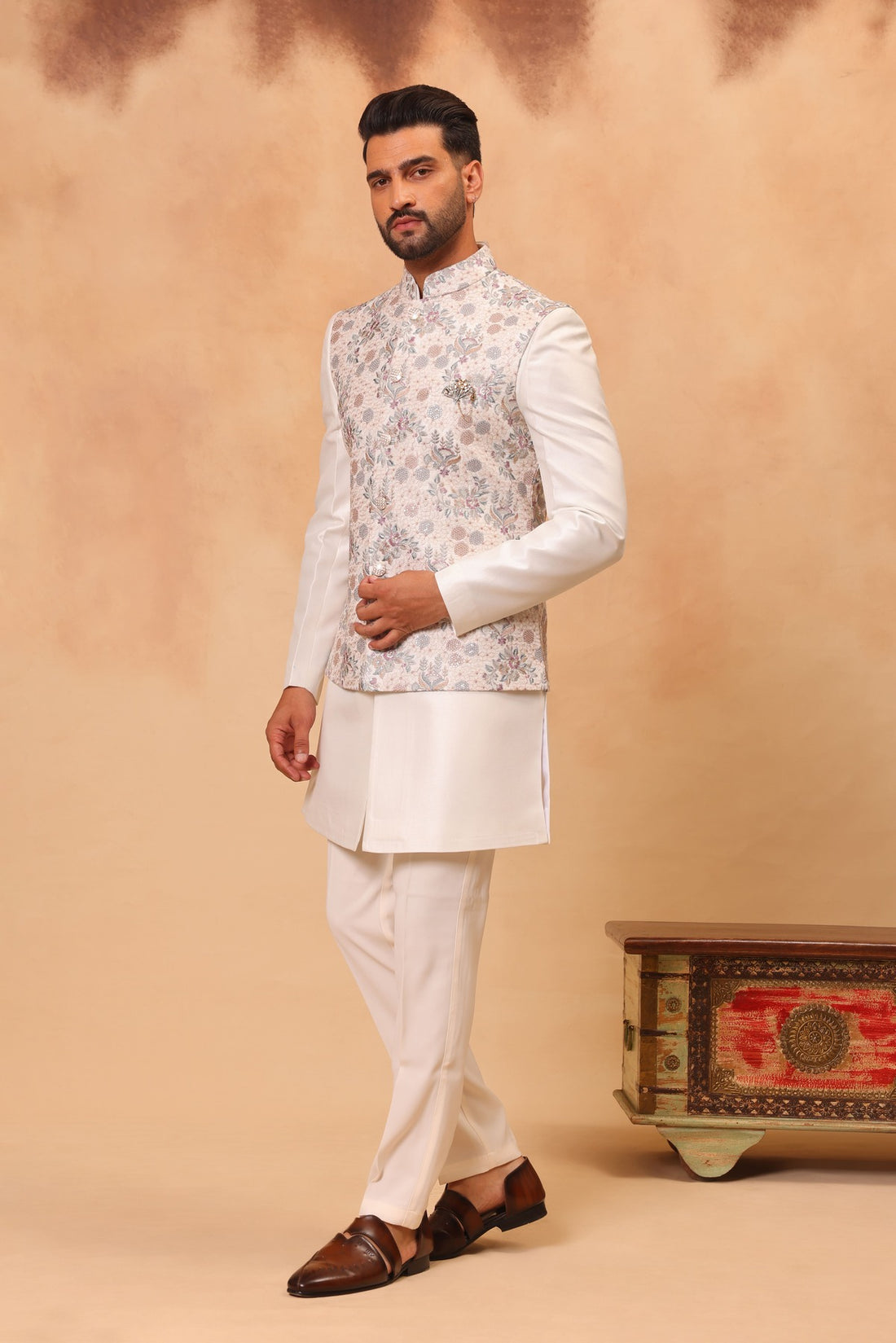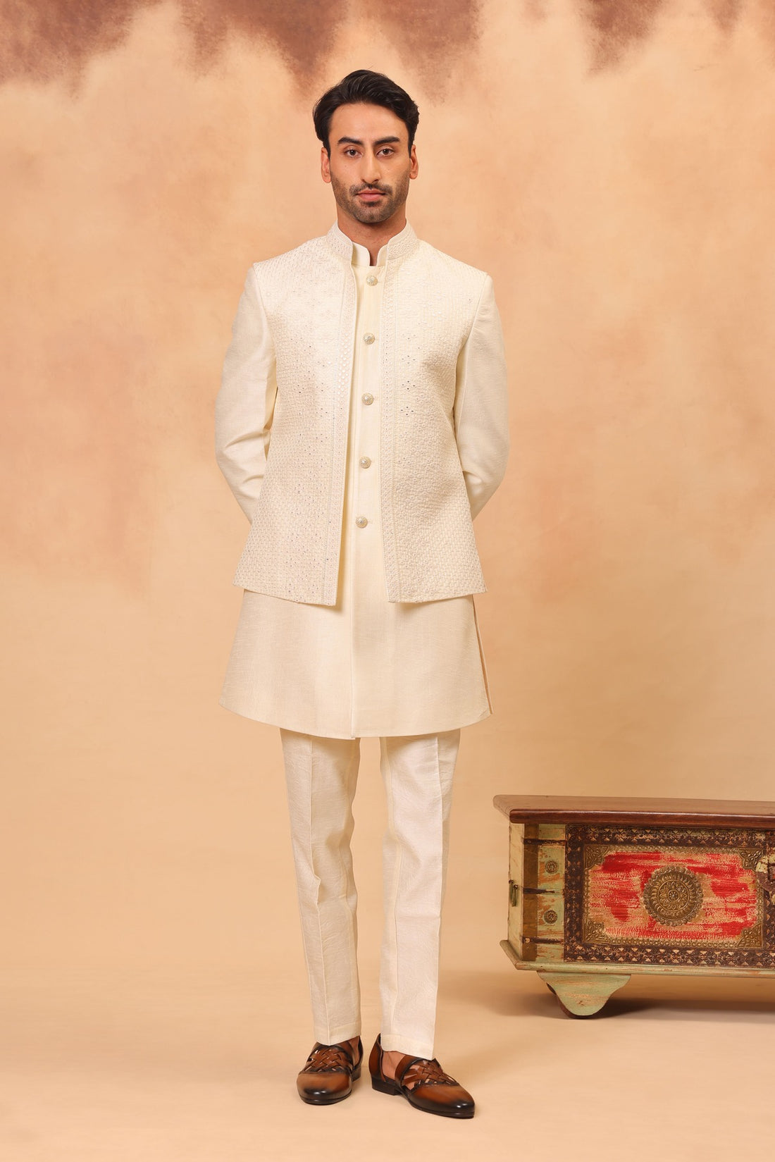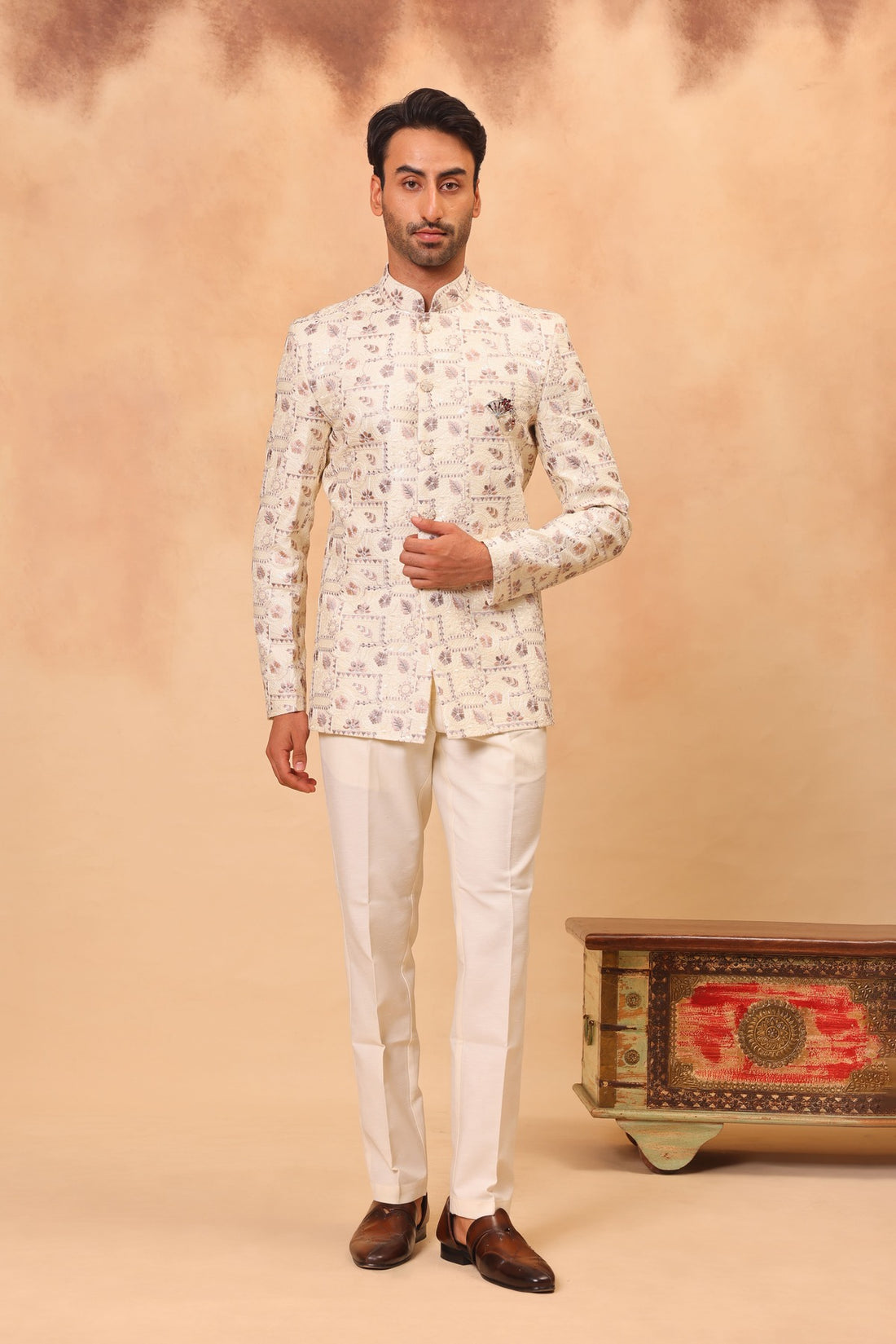 Cream Embroidered Jodhpuri Set with Formal Pants