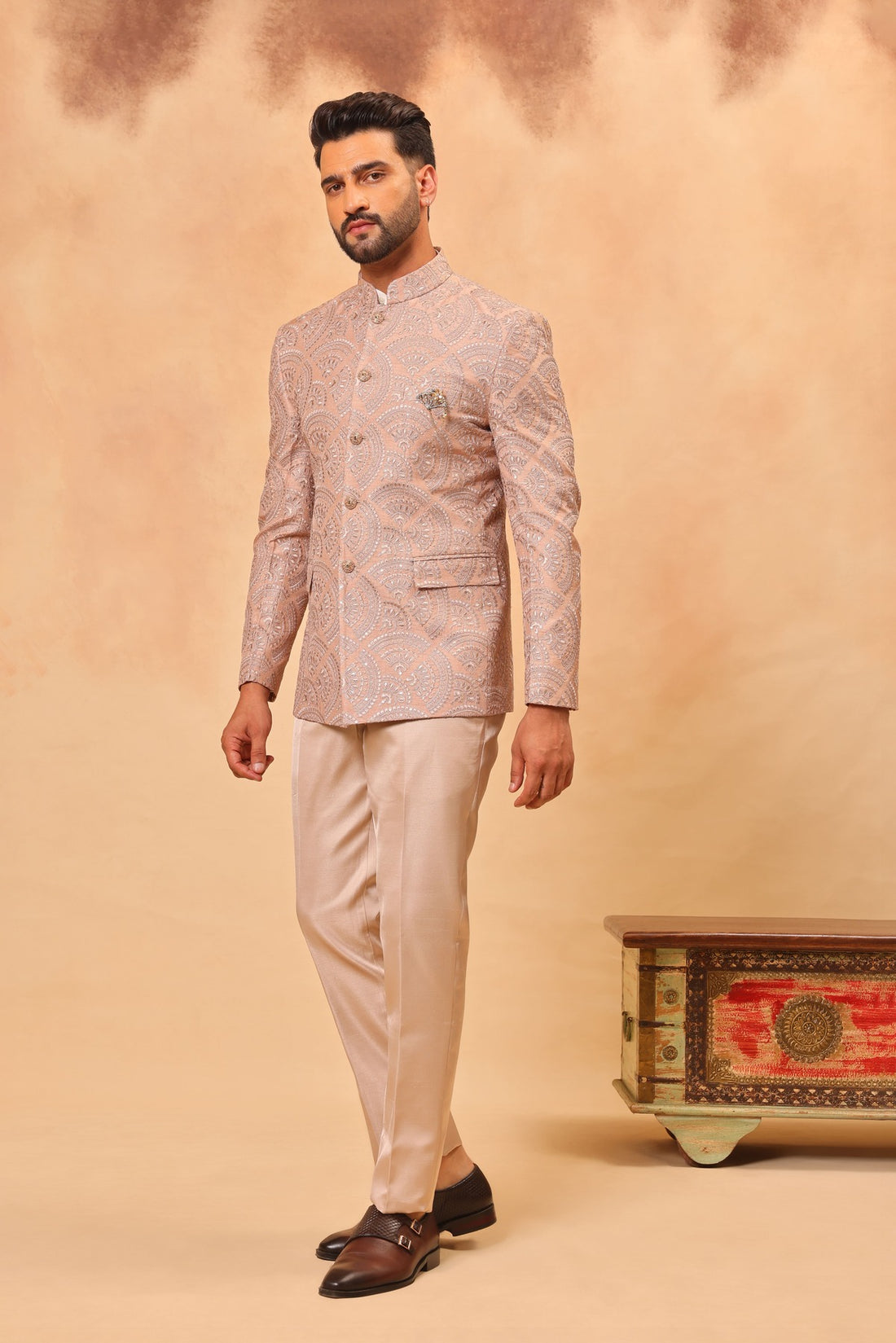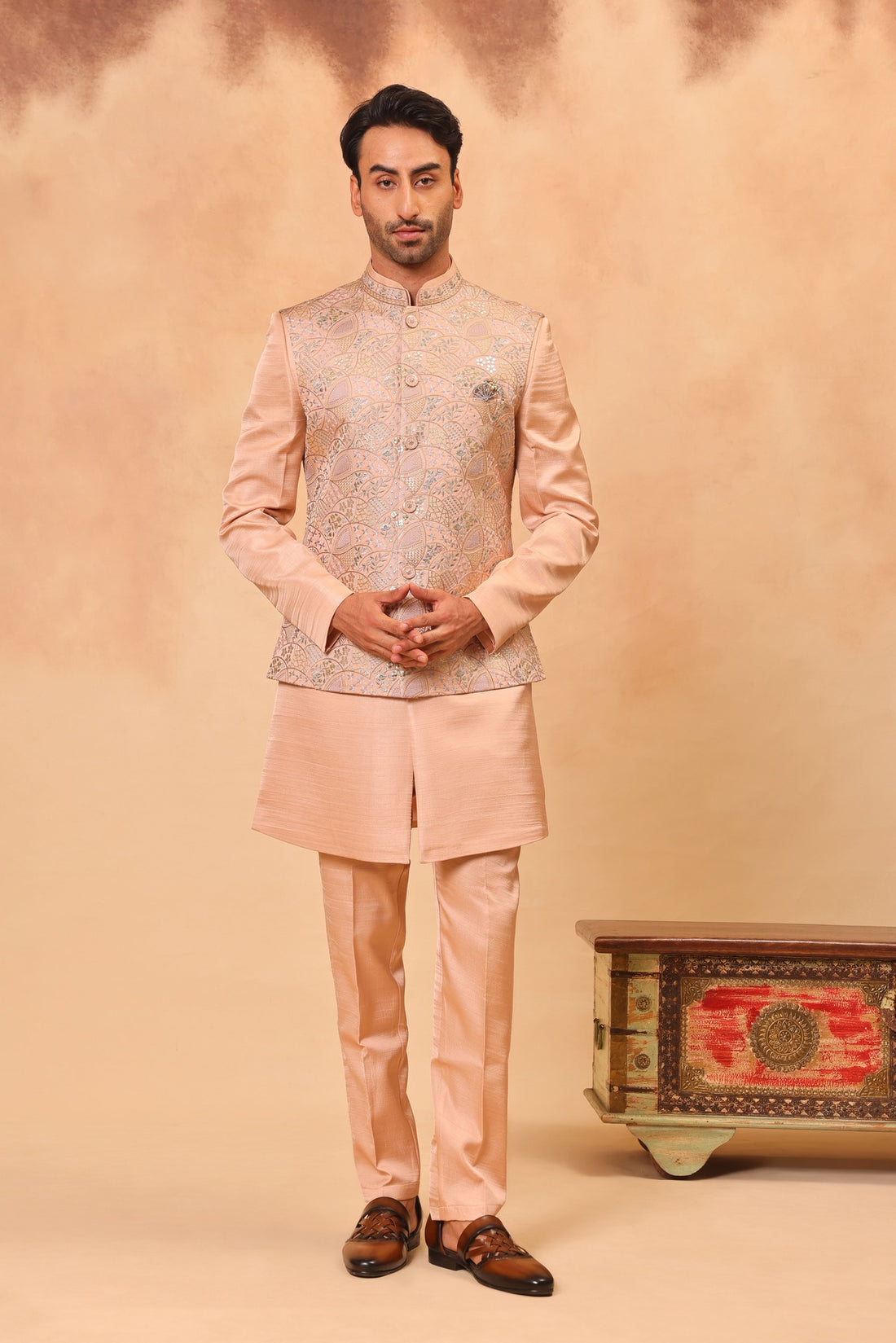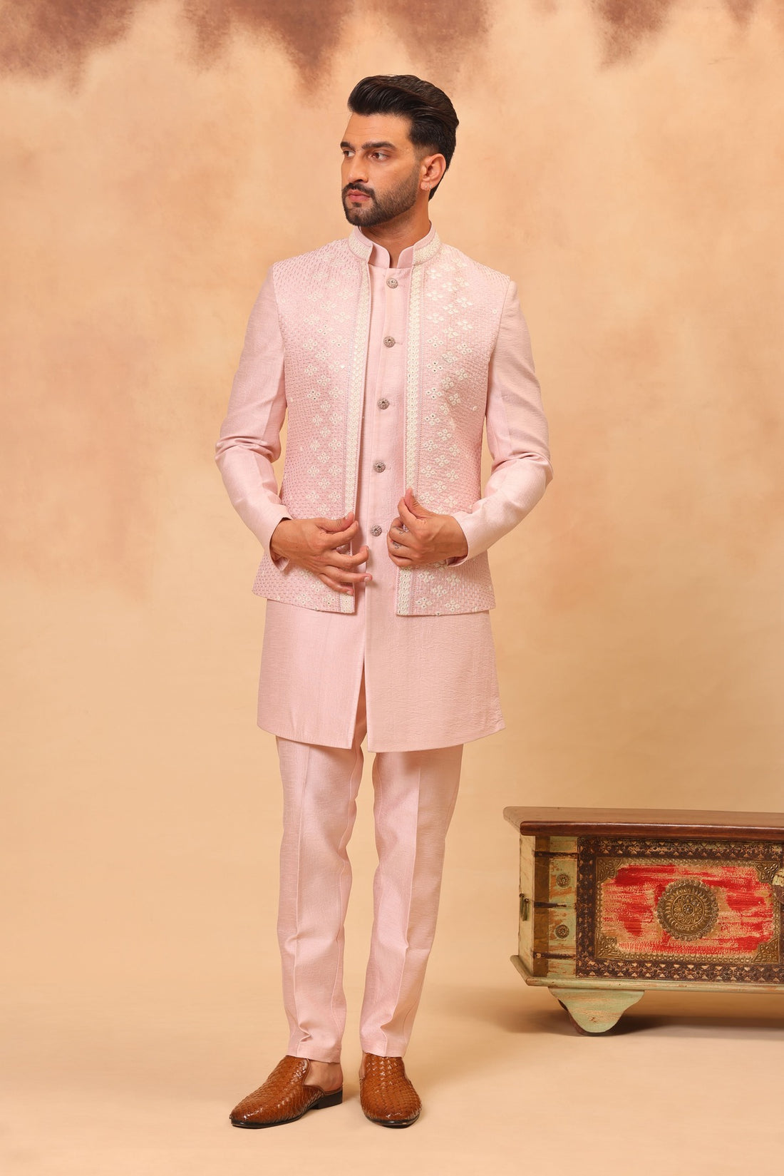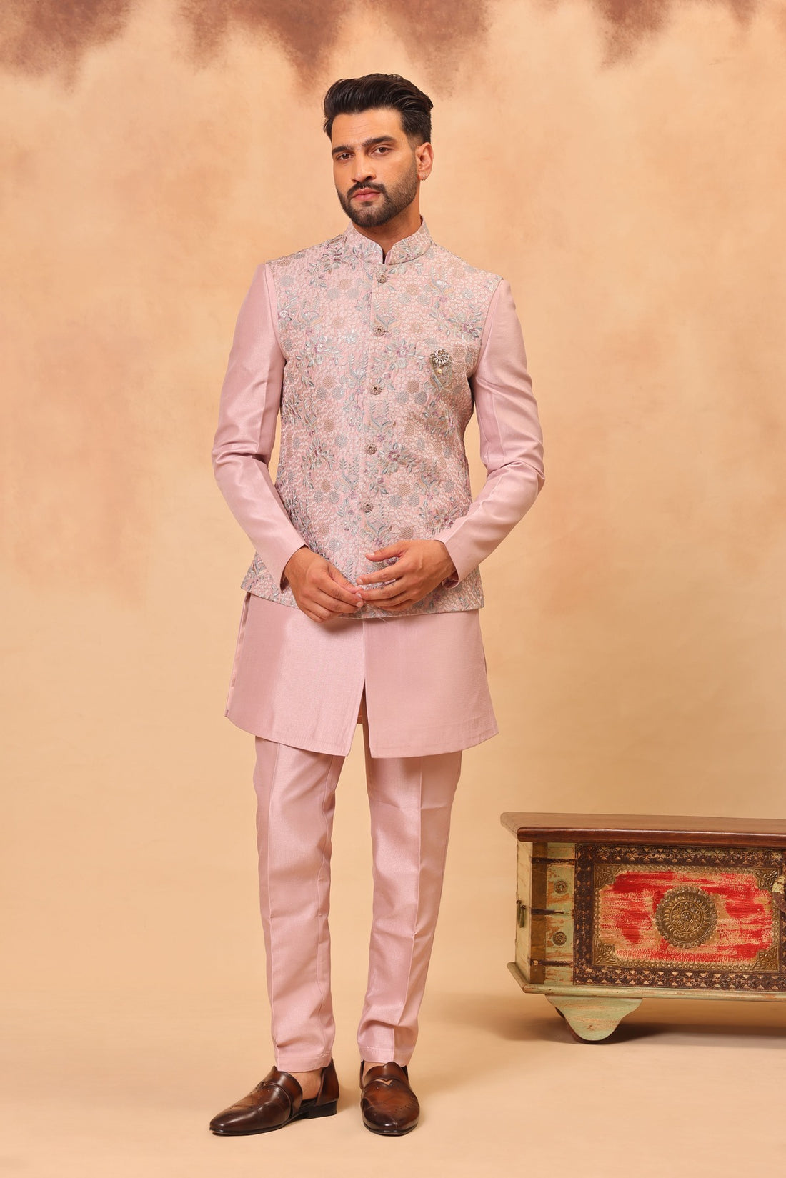 Onion Pink Embroidered Jodhpuri Set with Formal Pants