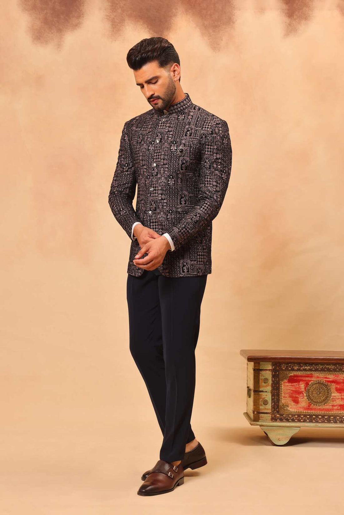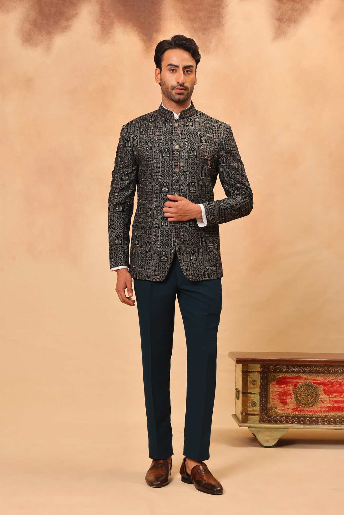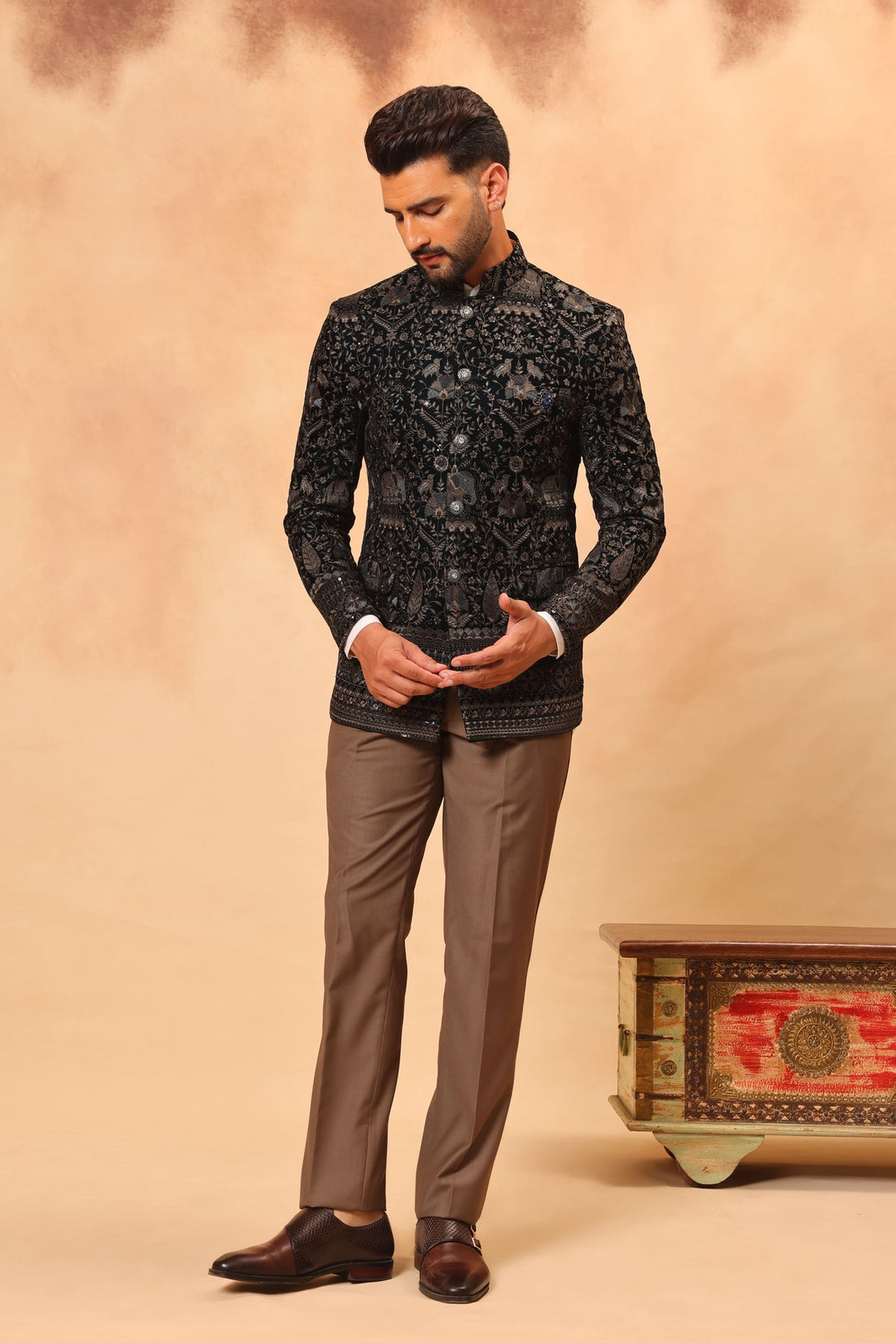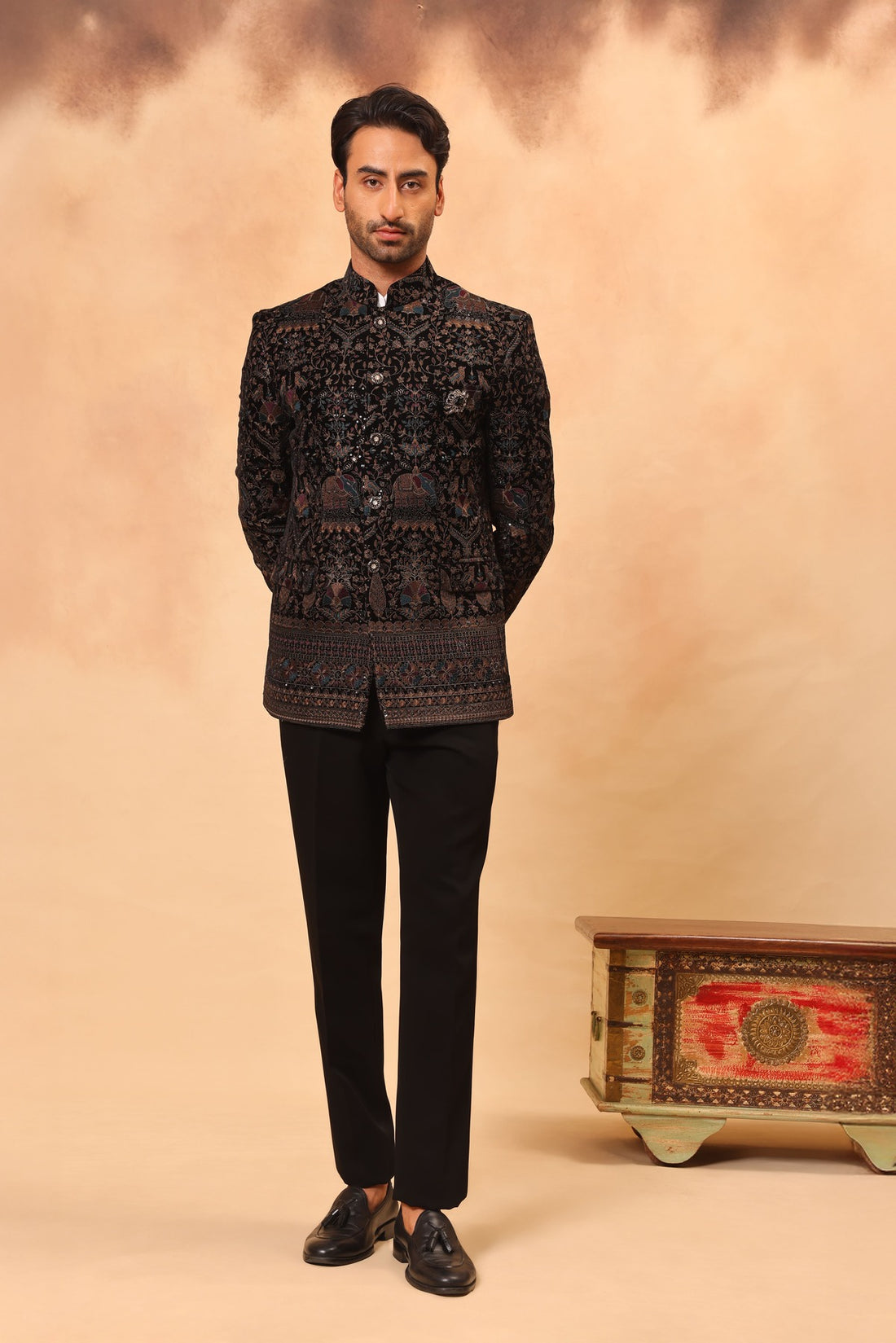 Black Velvet Zari Embroidered Jodhpuri Set with Formal Pants