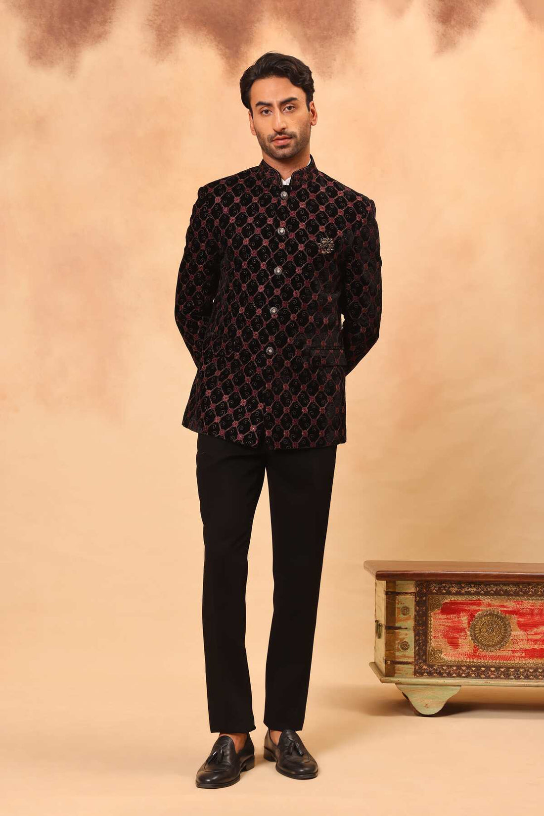 Black Velvet Embroidered Jodhpuri Set with Formal Pants