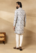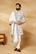 Cream Velvet Embroidered Sherwani Set with Dupatta