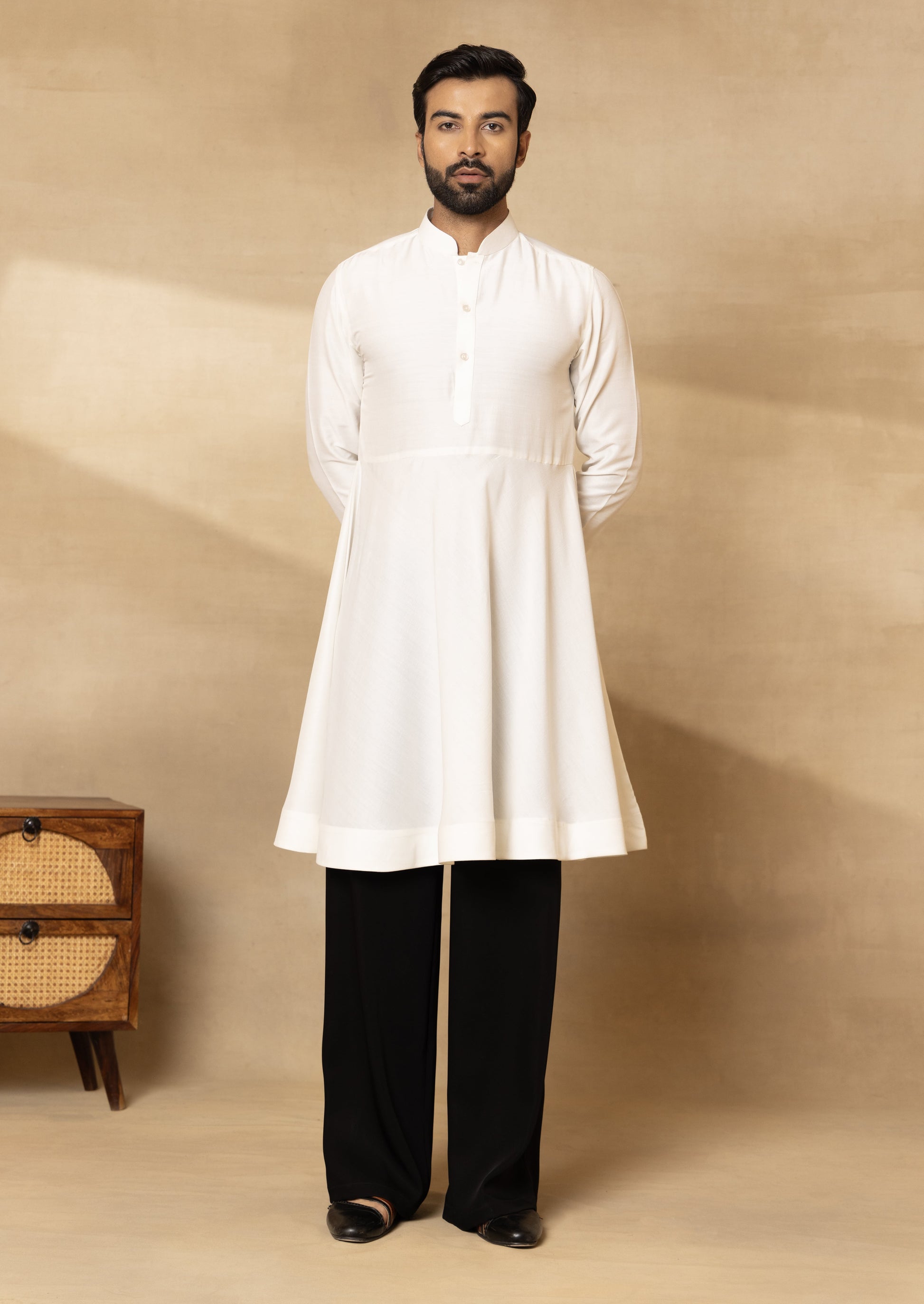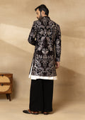 Components: 4 Colour: Black Fit: Regular Fit Neckline: Mandarin Collar Sleeve: Full Sleeves Anarkali Kurta Inside; Full Sleeves Long Jacket Fabric: Velvet Long Jacket; Creamy Silk Kurta; Trouser- Indonesian Fabric Elements: Embroidered Sherwani and Plain Anarkali Kurta; Embellished Buttons; Bespoke Brooch; Loose Fit Trouser. Care: Dry Clean Only. Steam Iron Only. Do Not Wash. (Possibility of slight colour variation)