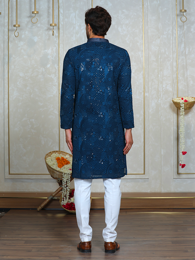 - Elements: Embroidered Long Kurta with Sequins Work and Regular Fit Trousers.