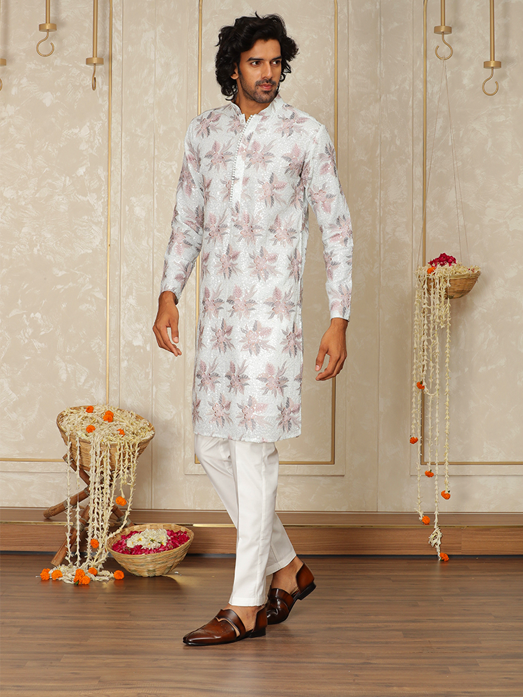 Sky Blue Georgette Embroidered Kurta Set for Men