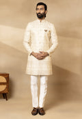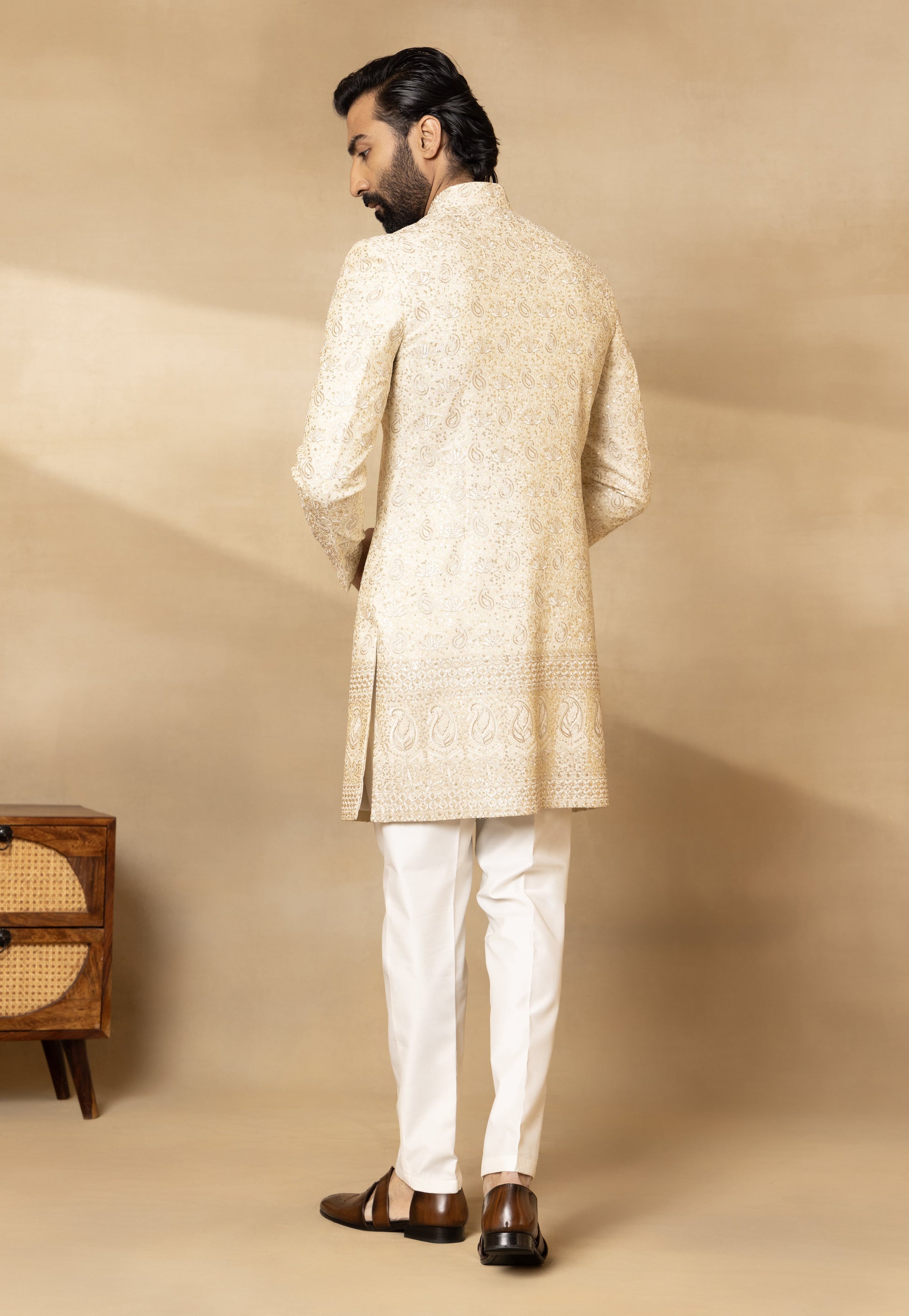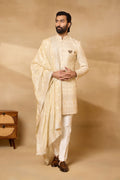 Gold Silk Embroidered Sherwani Set with Dupatta