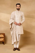 Grey Silk Embroidered Sherwani Set with Dupatta