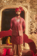 Elements: Heavy Embroidered Kurta and Embroidered Koti; Embellished Buttons; Bespoke Brooch; Contrasting Regular Fit Trousers.