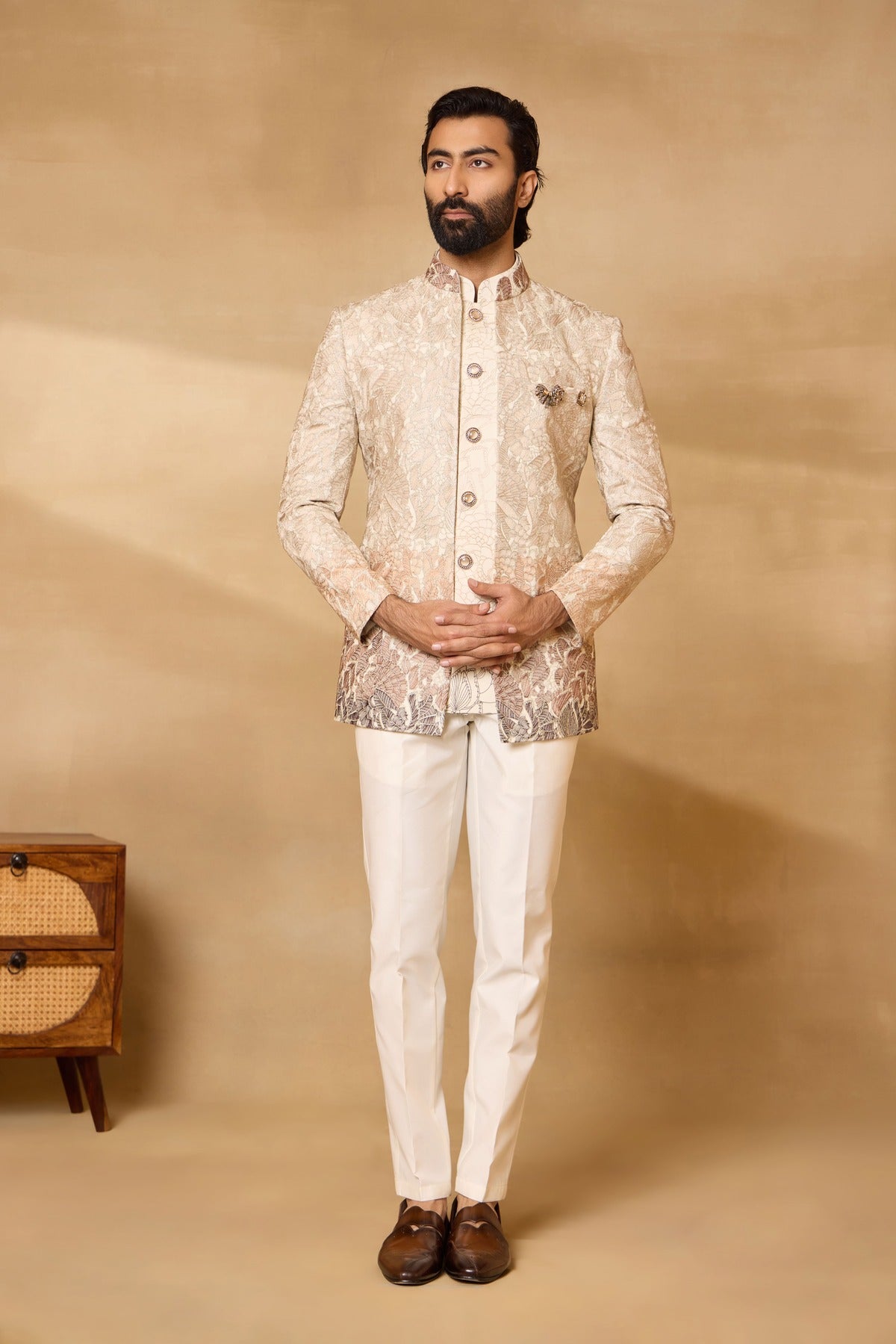 Ombre Fawn Embroidered Short Length Front Open Jacket Set