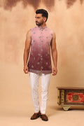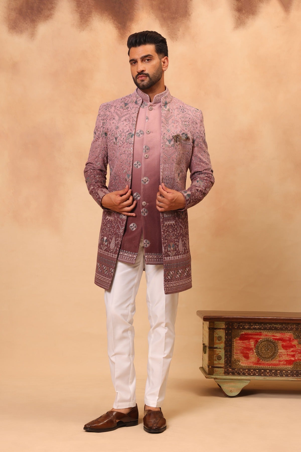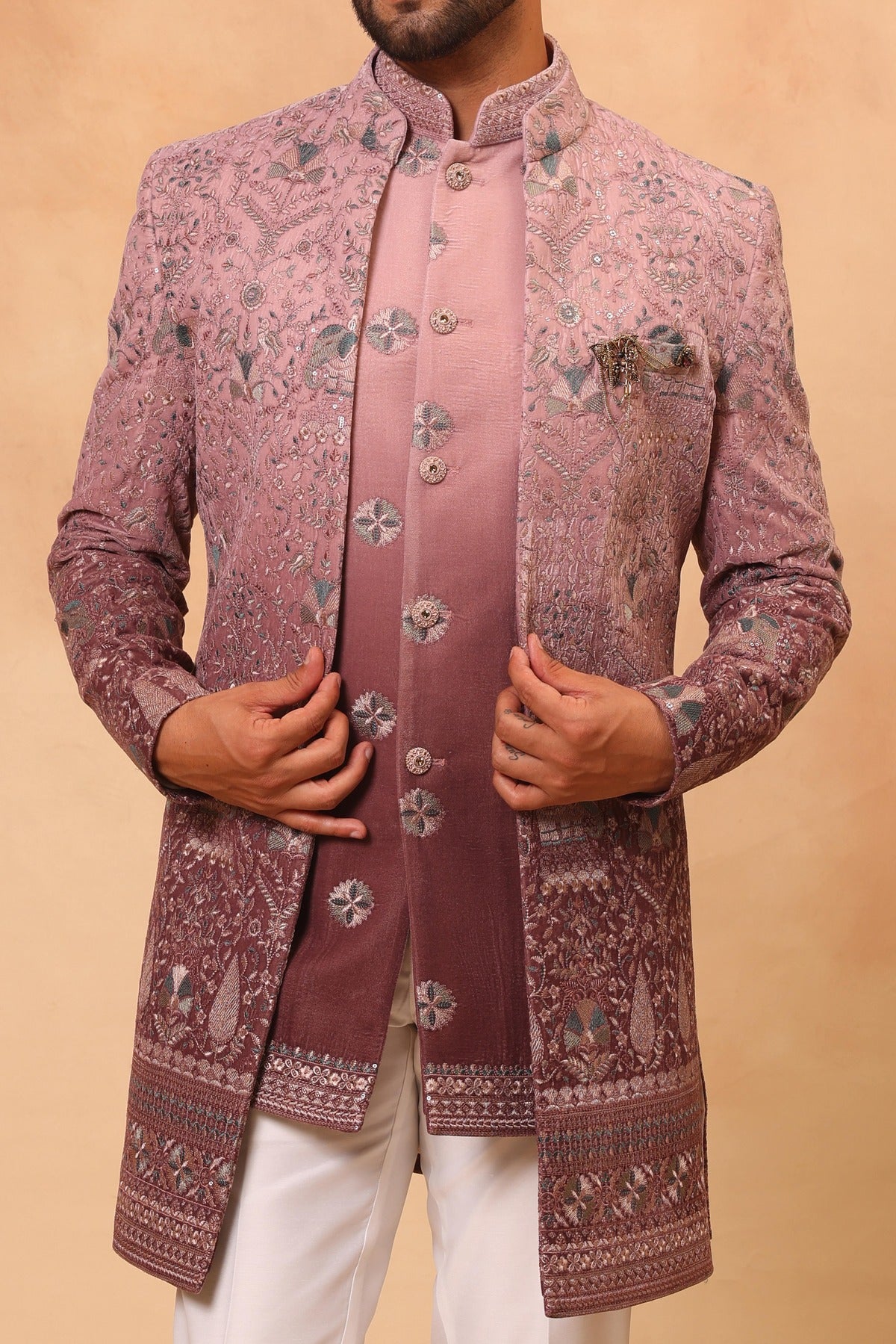 Ombre Rustish Pink Embroidered Front Open Sherwani Jacket Set