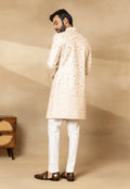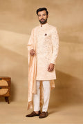 Peach Silk Embroidered Sherwani Set with Dupatta