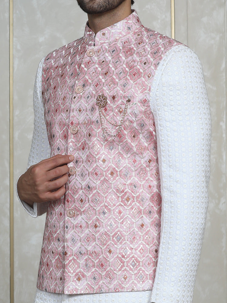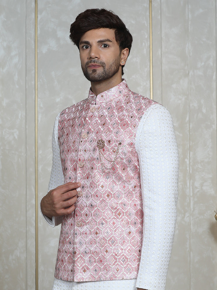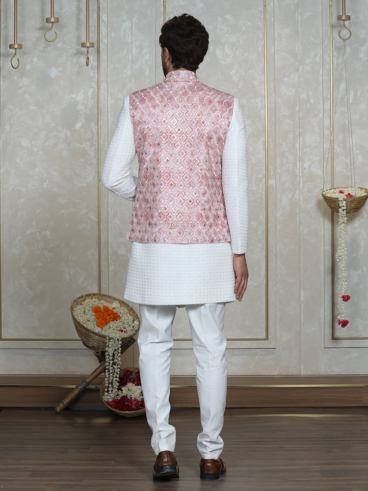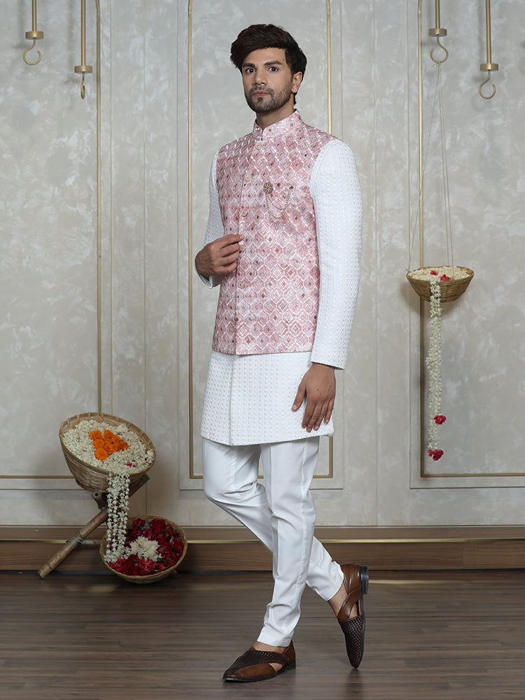 Pink Nehru Jacket Set with Lakhnavi Indo Western