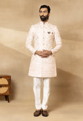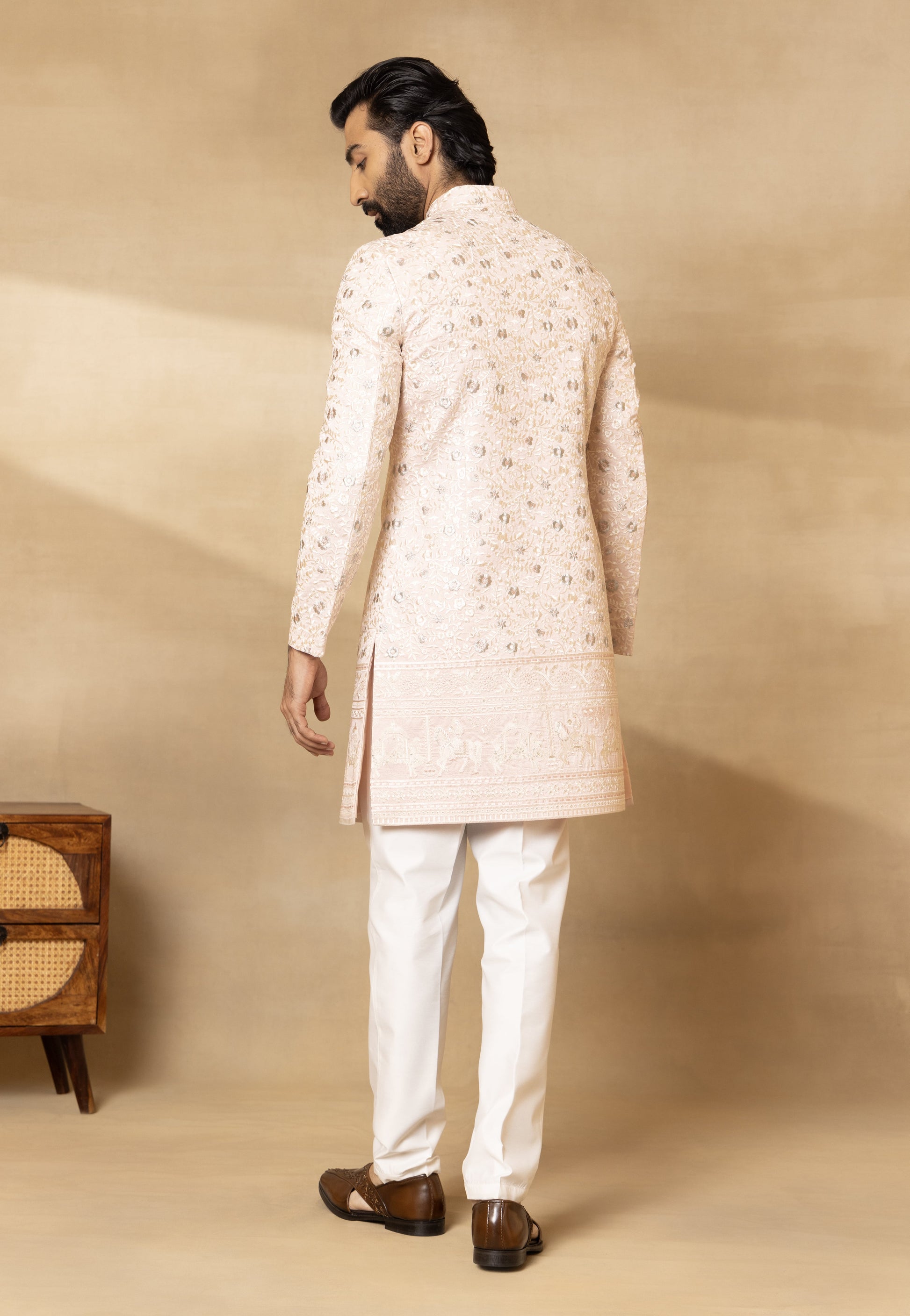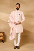 Pink Silk Embroidered Sherwani Set with Dupatta