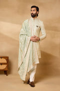 Pista Green Silk Embroidered Sherwani Set with Dupatta