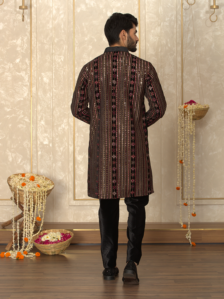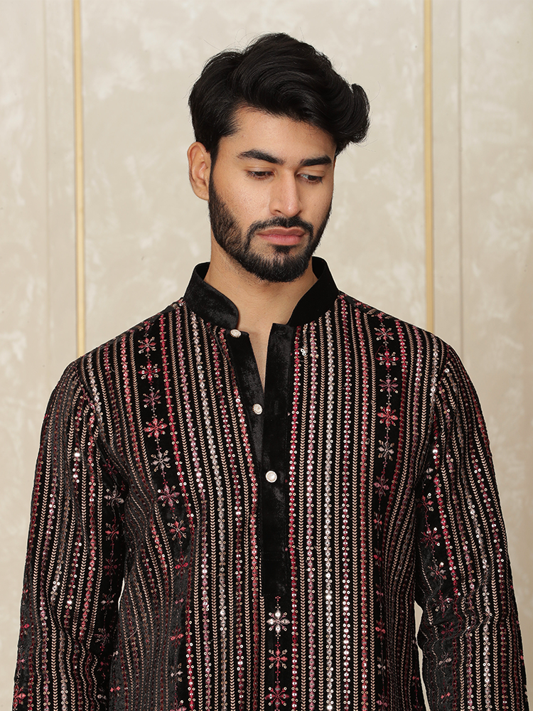 - Elements: Embroidered Kurta with Sequins Work and Regular Fit Velvet Trousers.